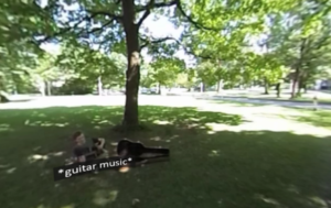 Let’s have a look at the 360° video first: various projections and mappings exist to store and display a 360° video; the most common one probably is the equirectangular projection. Image 1 shows how the equirectangular image would look like, when you render the stored 360° video 1:1 on a 2-dimensional plane: