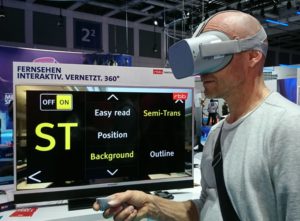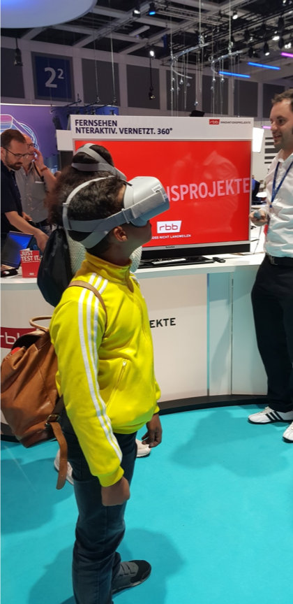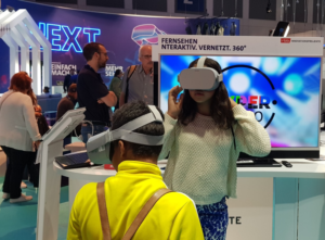 This year, the ImAc project was presented at the “Digitalen Welt der ARD” in hall 2.2. Visitors were invited to watch 360° demo videos using the latest version of the ImAc player. Once fully implemented, this tool will be one of the main project outcomes. It allows the integration of accessibility services such as subtitles, signer videos, audio description and audio subtitles into 360° videos.
