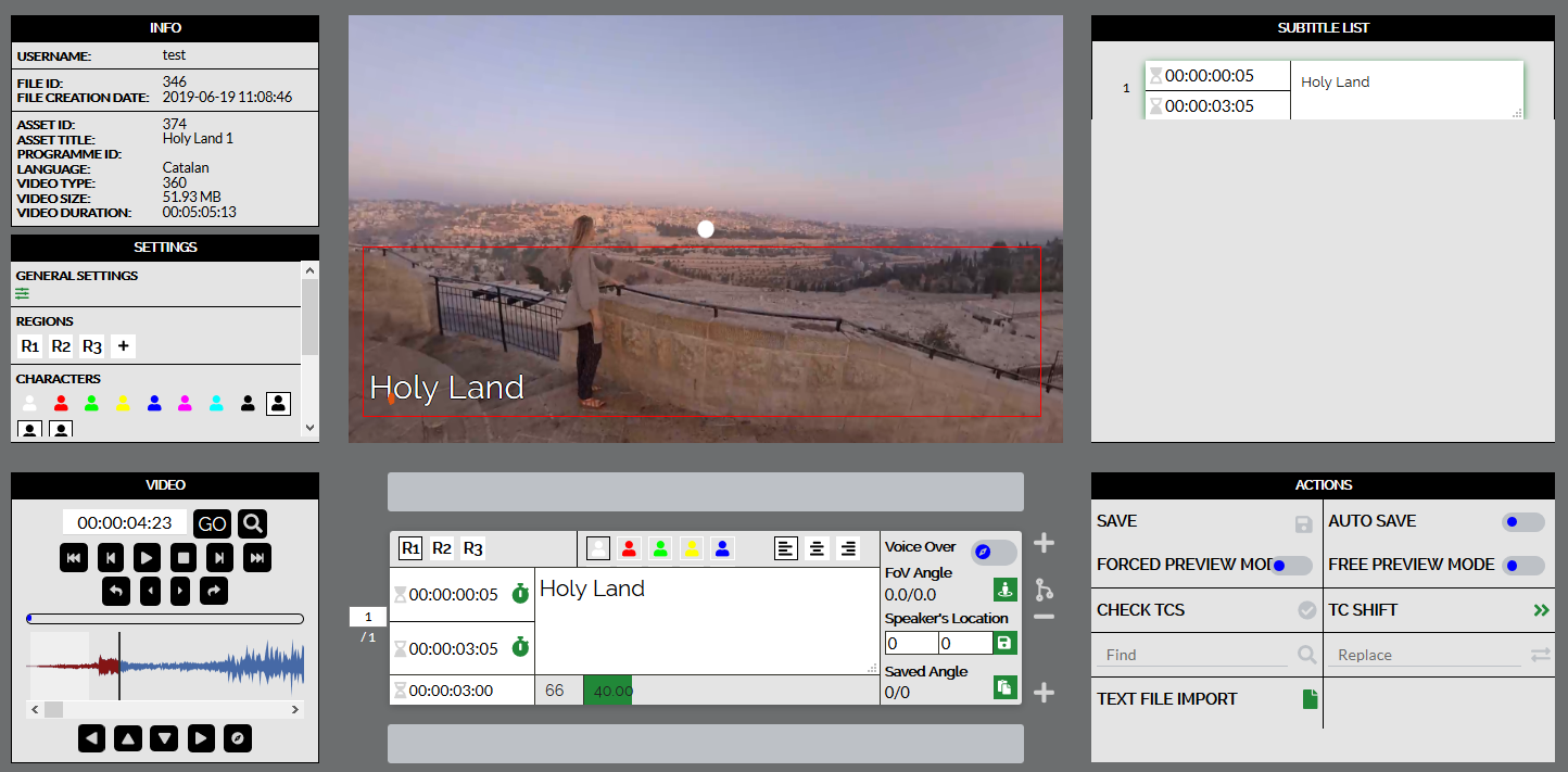 Subtitles are delivered using the IMSC subtitle format which we have extended to carry additional metadata needed for the presentation modes shown above. One essential information is the location of a related speaker within the scene for each subtitle.